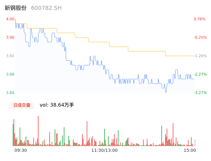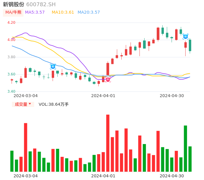 04月30日,新钢股份收报3.87,股价涨幅-2.52%,成交金额1.51亿元,换手率1.23%。
