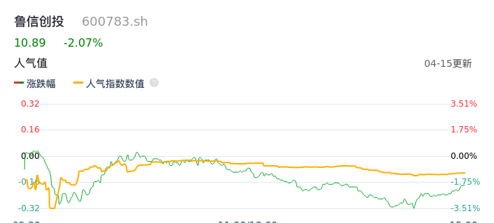 04月15日,鲁信创投收报10.89,股价涨幅-2.07%,成交金额3773.02万元,换手率0.46%。