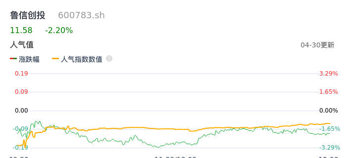 04月30日,鲁信创投收报11.58,股价涨幅-2.20%,成交金额1.47亿元,换手率1.70%。