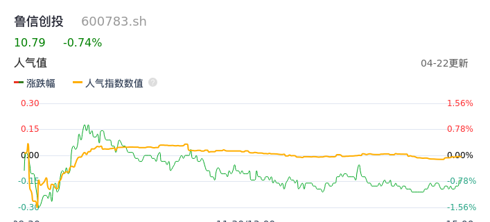 04月22日,鲁信创投收报10.79,股价涨幅-0.74%,成交金额1549.09万元,换手率0.19%。