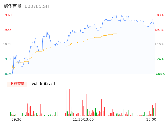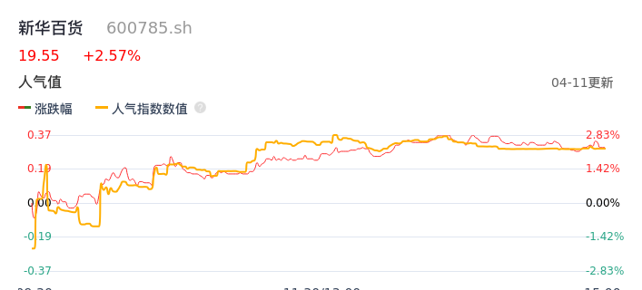 04月11日,新华百货收报19.55,股价涨幅2.57%,成交金额1.71亿元,换手率3.91%。