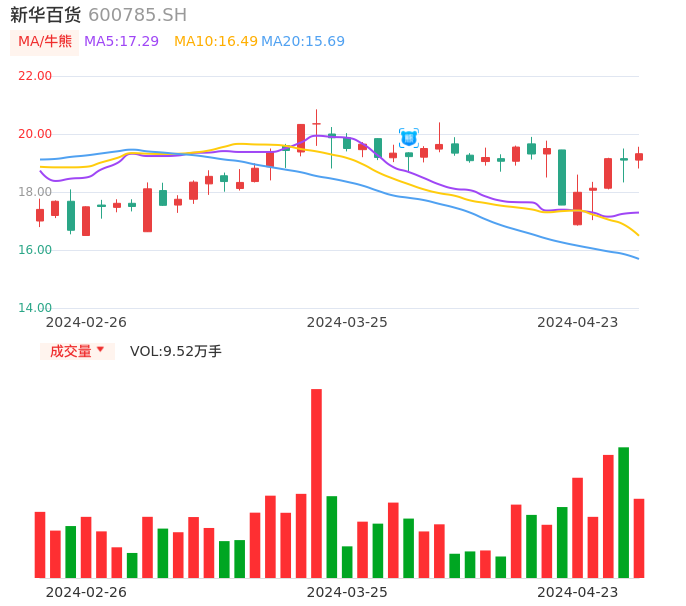 04月23日,新华百货收报19.32,股价涨幅1.15%,成交金额1.84亿元,换手率4.22%。