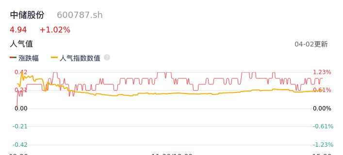 04月02日,中储股份收报4.94,股价涨幅1.02%,成交金额5498.61万元,换手率0.51%。