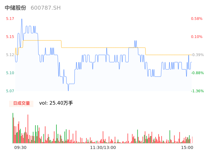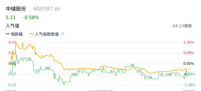 04月23日,中储股份收报5.11,股价涨幅-0.58%,成交金额1.30亿元,换手率1.17%。