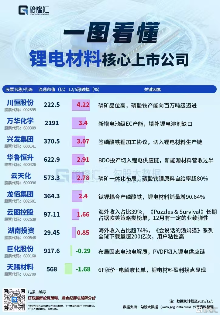 附锂电材料核心上市公司梳理,供参考,如需获取更多行业动态,可扫码关注了解详情。