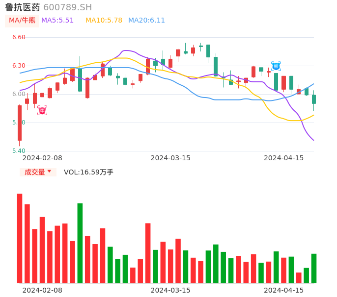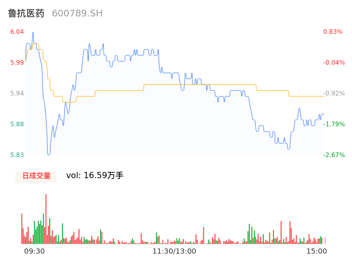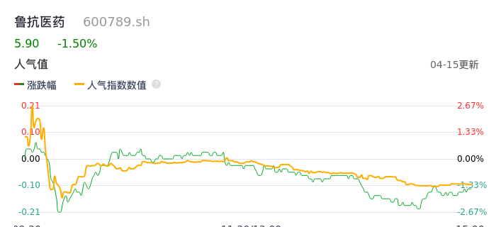 04月15日,鲁抗医药收报5.90,股价涨幅-1.50%,成交金额9832.74万元,换手率1.85%。