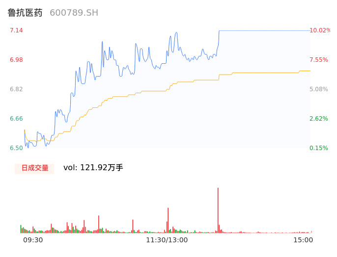 04月30日,鲁抗医药收报7.14,股价涨幅10.02%,成交金额8.43亿元,换手率13.61%。