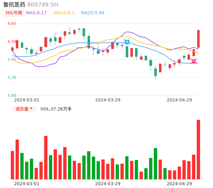 04月29日,鲁抗医药收报6.49,股价涨幅5.19%,成交金额2.37亿元,换手率4.16%。