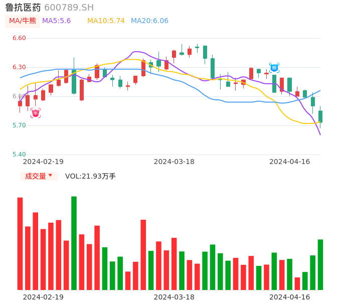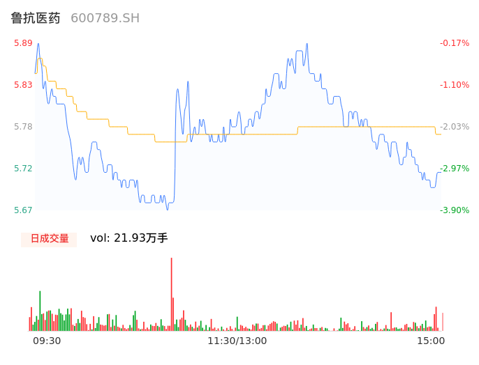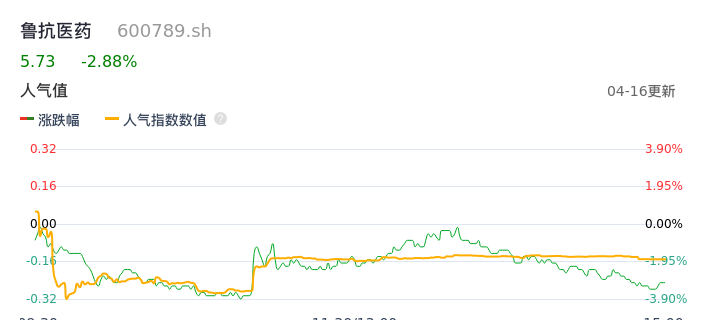 04月16日,鲁抗医药收报5.73,股价涨幅-2.88%,成交金额1.27亿元,换手率2.45%。