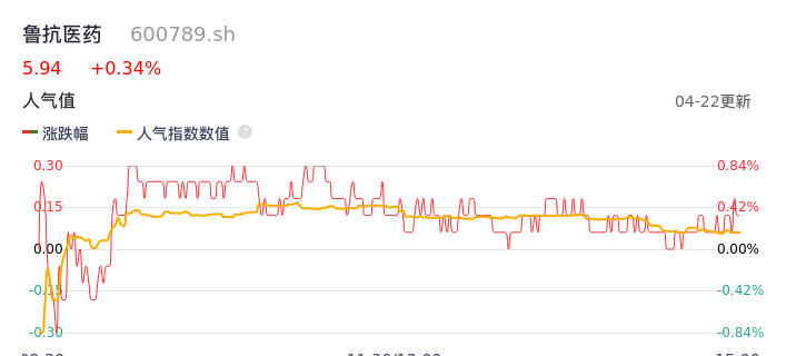 04月22日,鲁抗医药收报5.94,股价涨幅0.34%,成交金额5827.10万元,换手率1.10%。