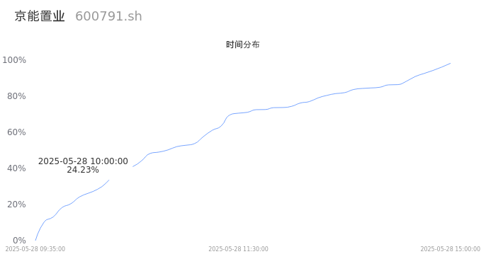 600791京能置业2025年05月28日成交5.21万手,成交金额2272.18万,相较昨日缩量6700手,换手率1.15%,成交清淡。