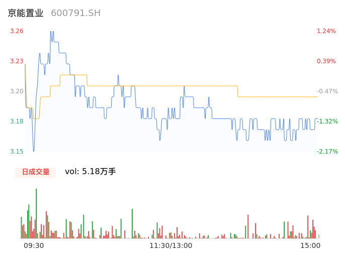 04月19日,京能置业收报3.17,股价涨幅-1.55%,成交金额1654.62万元,换手率1.14%。