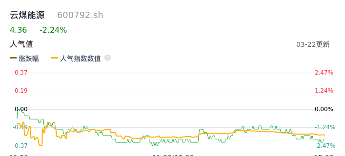 03月22日,云煤能源收报4.36,股价涨幅-2.24%,成交金额8408.05万元,换手率1.93%。