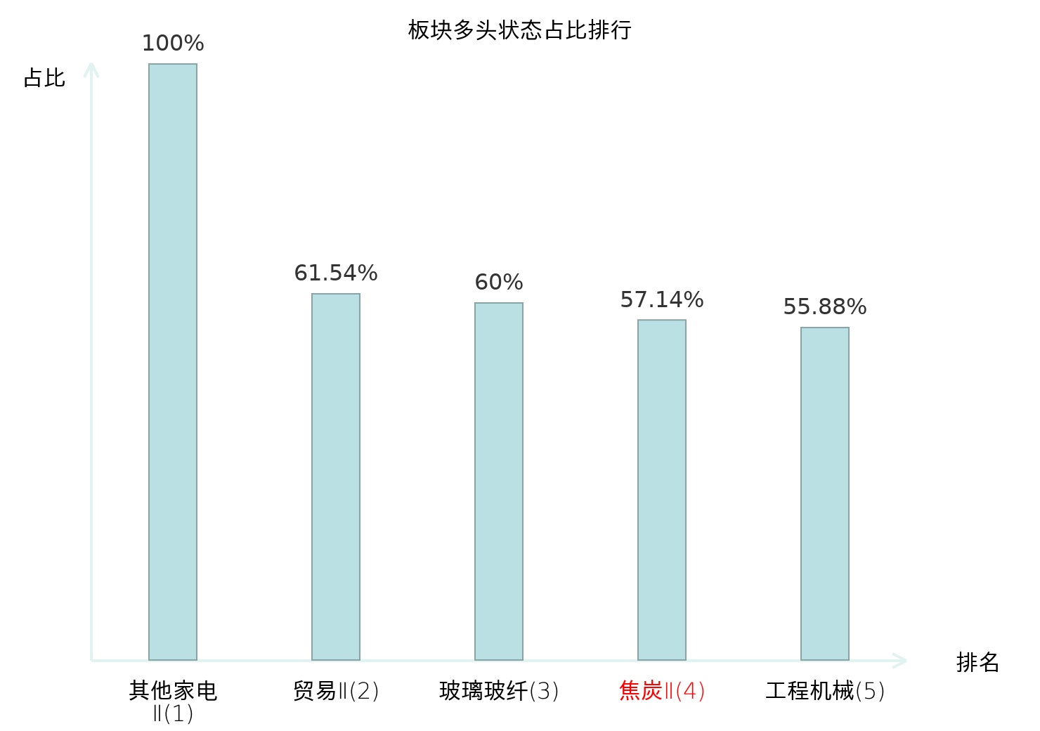 全市场所有行业板块中主力多头状态占比排名中,其他家电Ⅱ板块位居第一。航海装备Ⅱ板块名次提升最快,较昨日上升98位。