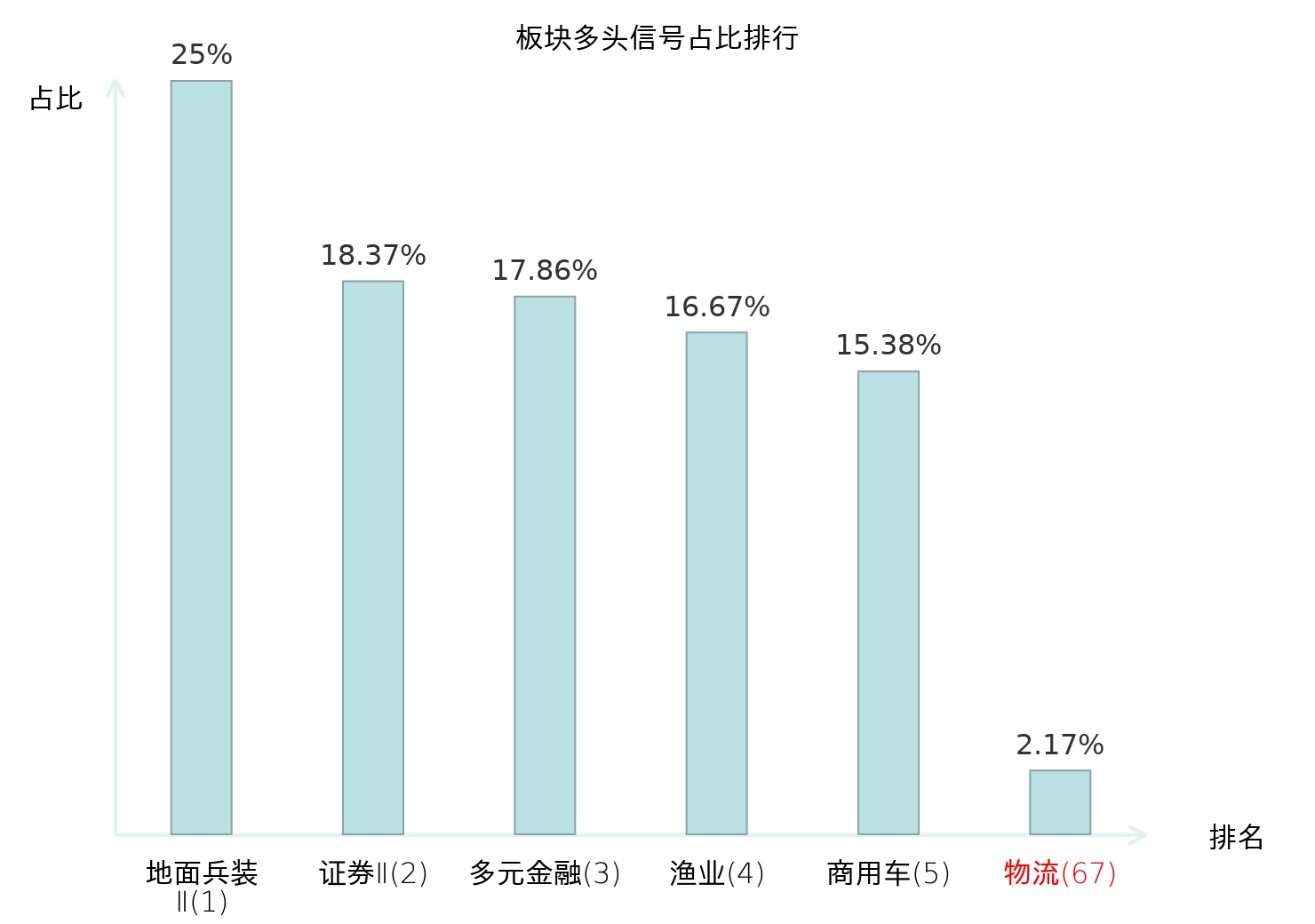 从主力宝信号数据分析,保税科技所在物流板块共有1只股票发出主力多头信号,主力多头信号占比在全行业中排名第67位,较昨日上升2位。排名的提升表明主力今日对物流板块的买入意愿有所增强,为投资者提供了市场情绪的积极信号。全市场所有行业板块中,地面兵装Ⅱ板块的主力多头信号占比最高,位居第一;渔业板块名次提升最快,较昨日上升119位。这些变动反映了不同行业间主力资金的动向,有助于投资者更好地把握市场动态。