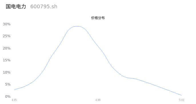 然后我们来看下当日成交的价格分布。经过分析发现,该股票当日成交价格波动低于10个最小波动价位,由于可以参考的样本量非常少,价格分布分析的结果不具有指导意义,下图仅供参考。