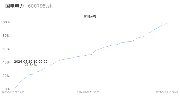 600795国电电力2024年04月26日成交138.79万手,成交金额6.92亿元,相较昨日放量29.62万手,换手率0.78%,成交清淡。