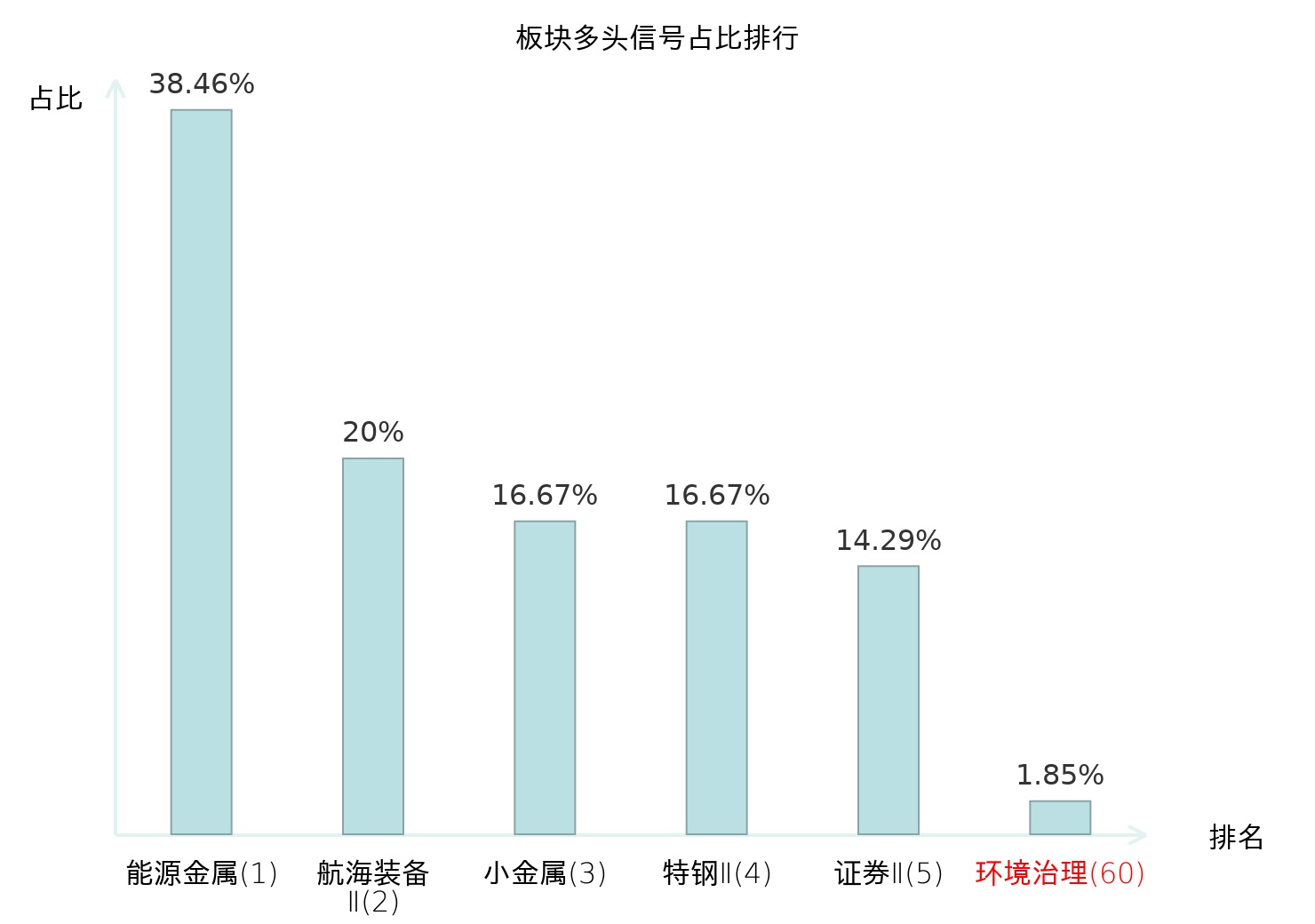 从主力宝信号数据分析,钱江生化所属的环境治理板块中共有2只股票发出主力多头信号,主力多头信号占比在全行业中排名第60位,较昨日下降5位。排名的下降可能反映了主力对该板块态度的一些变化,但仍处于较高水平,表明主力整体买入意愿仍较强。全市场所有行业板块中主力多头信号占比排名中,能源金属板块位居第一;航海装备Ⅱ板块名次提升最快,较昨日上升112位。这些变动揭示了不同行业间主力资金动向的趋势,为投资者提供了关于市场情绪和潜在投资机会的重要线索。
