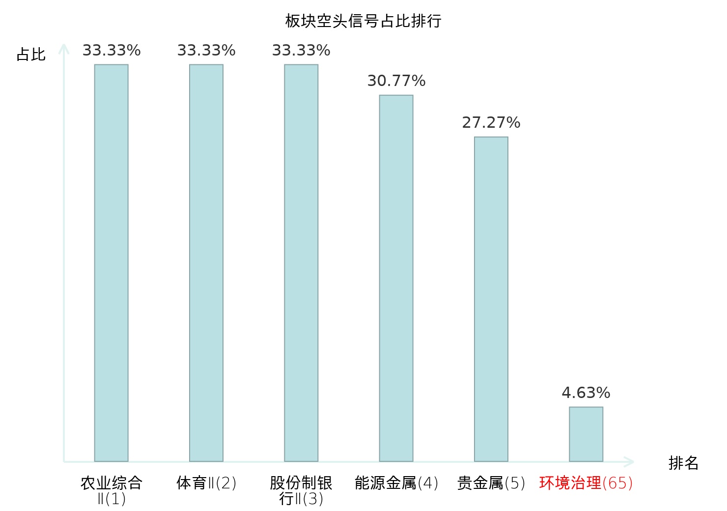 全市场所有行业板块中主力空头信号占比排名中,农业综合Ⅱ板块位居第一。出版板块名次提升最快,较昨日上升115位。