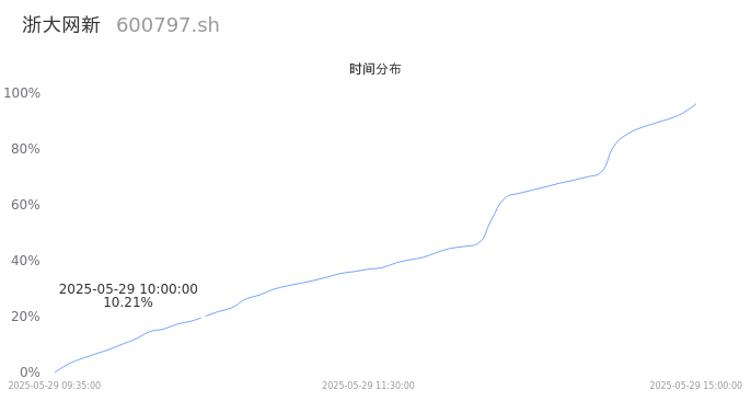 600797浙大网新2025年05月29日成交63.22万手,成交金额6.11亿,相较昨日放量28.00万手,换手率6.15%,成交清淡。