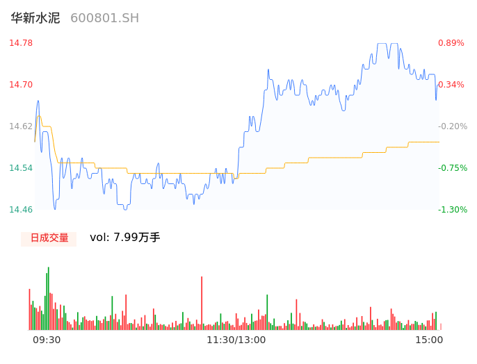 04月26日,华新水泥收报14.72,股价涨幅0.48%,成交金额1.17亿元,换手率0.59%。