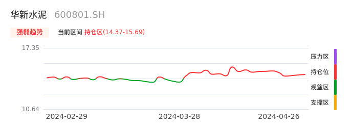 我们来看一下该股的九方特色指标强弱趋势的情况:华新水泥自03月29日从观望区上穿到持仓区。股价近期在多头区域持续强势上扬,上升动能仍较为充足,可积极关注。后续重点关注上方压力位:15.69元是否能突破上攻。