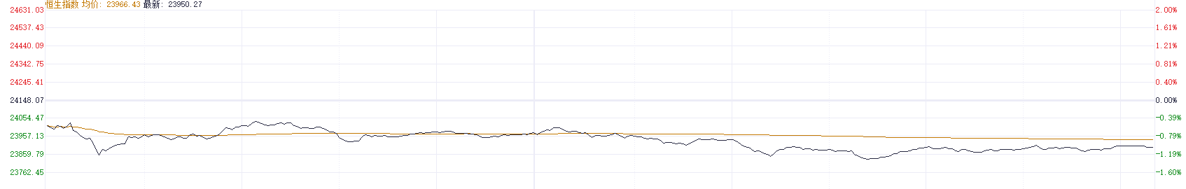 港股三大指数周三集体调整。截至收盘,恒生指数跌1.06%,报23892.32点;恒生科技指数跌1.76%,报5231.99点;国企指数跌1.28%,报8597.27点。
