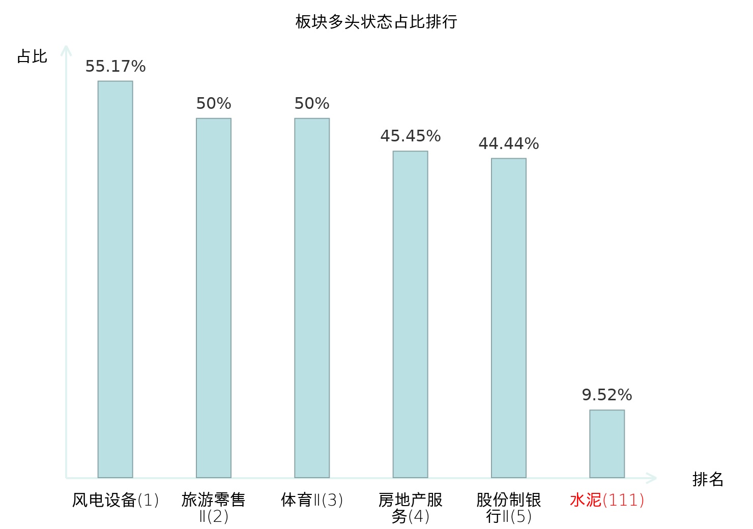 全市场所有行业板块中主力多头状态占比排名中,风电设备板块位居第一。保险Ⅱ板块名次提升最快,较昨日上升64位。