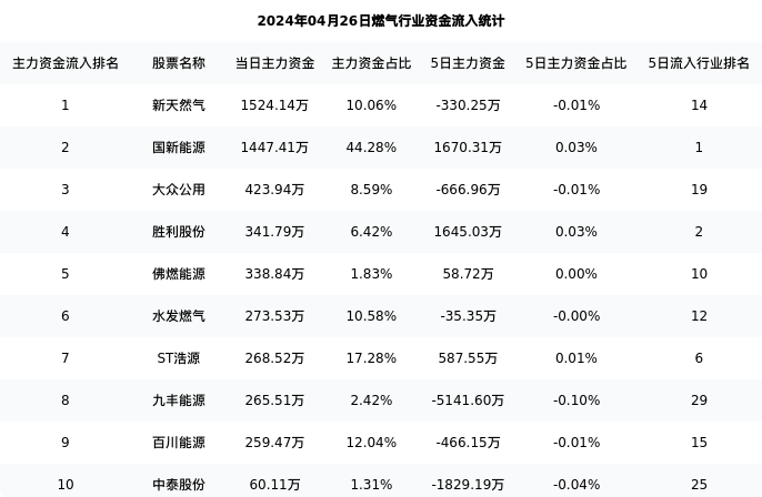 从主力资金流向来看,燃气行业今日主力资金流入4.22亿元,在所有申万二级行业中排名:14/131。