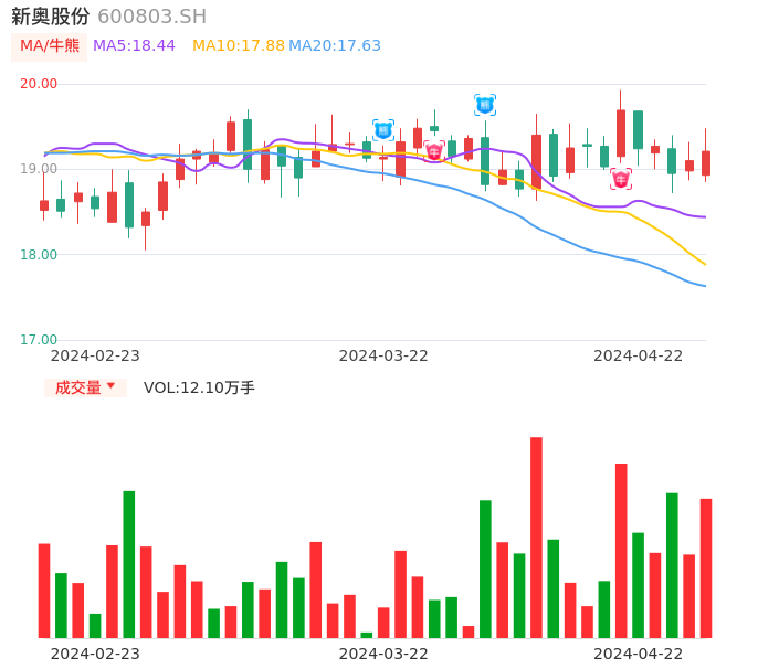 04月22日,新奥股份收报19.21,股价涨幅0.58%,成交金额2.33亿元,换手率0.43%。