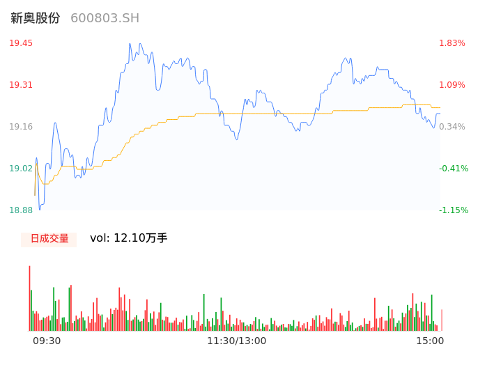 04月22日,新奥股份收报19.21,股价涨幅0.58%,成交金额2.33亿元,换手率0.43%。