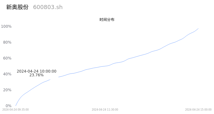 600803新奥股份2024年04月24日成交6.49万手,成交金额1.20亿元,相较昨日缩量7.47万手,换手率0.23%,成交清淡。