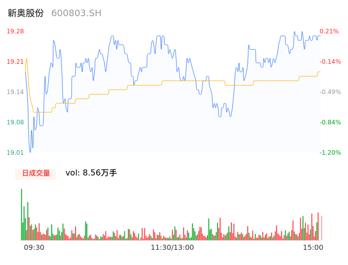 04月17日,新奥股份收报19.27,股价涨幅0.16%,成交金额1.64亿元,换手率0.30%。