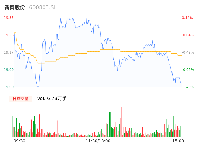 04月12日,新奥股份收报19.03,股价涨幅-1.25%,成交金额1.29亿元,换手率0.24%。