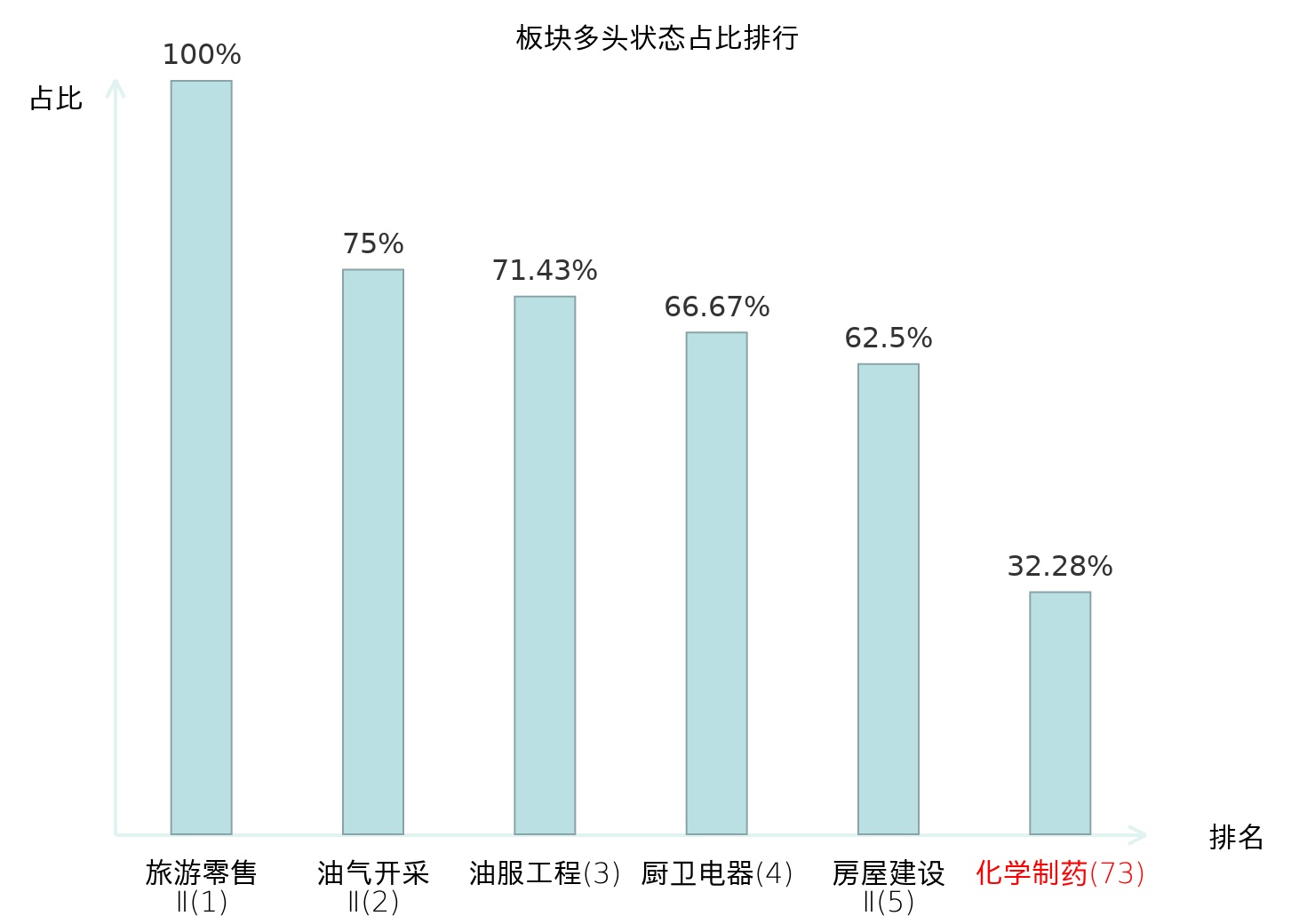 全市场所有行业板块中主力多头状态占比排名中,旅游零售Ⅱ板块位居第一。焦炭Ⅱ板块名次提升最快,较昨日上升58位。