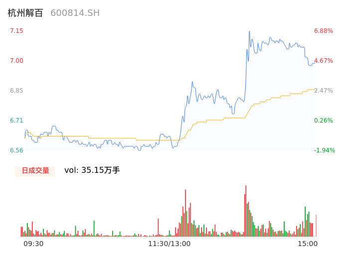 04月10日,杭州解百收报7.00,股价涨幅4.63%,成交金额2.41亿元,换手率4.86%。