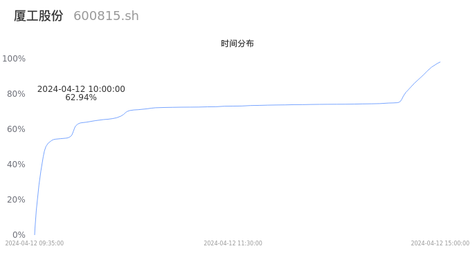 600815厦工股份2024年04月12日成交127.47万手,成交金额3.79亿元,相较昨日放量59.24万手,换手率7.19%,成交清淡。