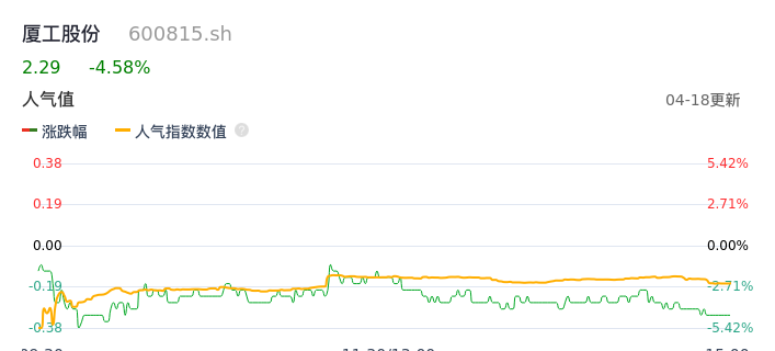 04月18日,厦工股份收报2.29,股价涨幅-4.58%,成交金额1.26亿元,换手率3.08%。