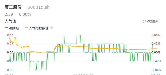 04月02日,厦工股份收报2.39,股价涨幅0.00%,成交金额2262.39万元,换手率0.53%。
