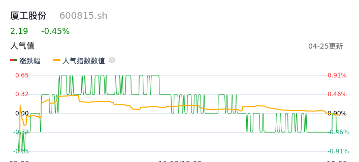 04月25日,厦工股份收报2.19,股价涨幅-0.45%,成交金额2391.27万元,换手率0.61%。