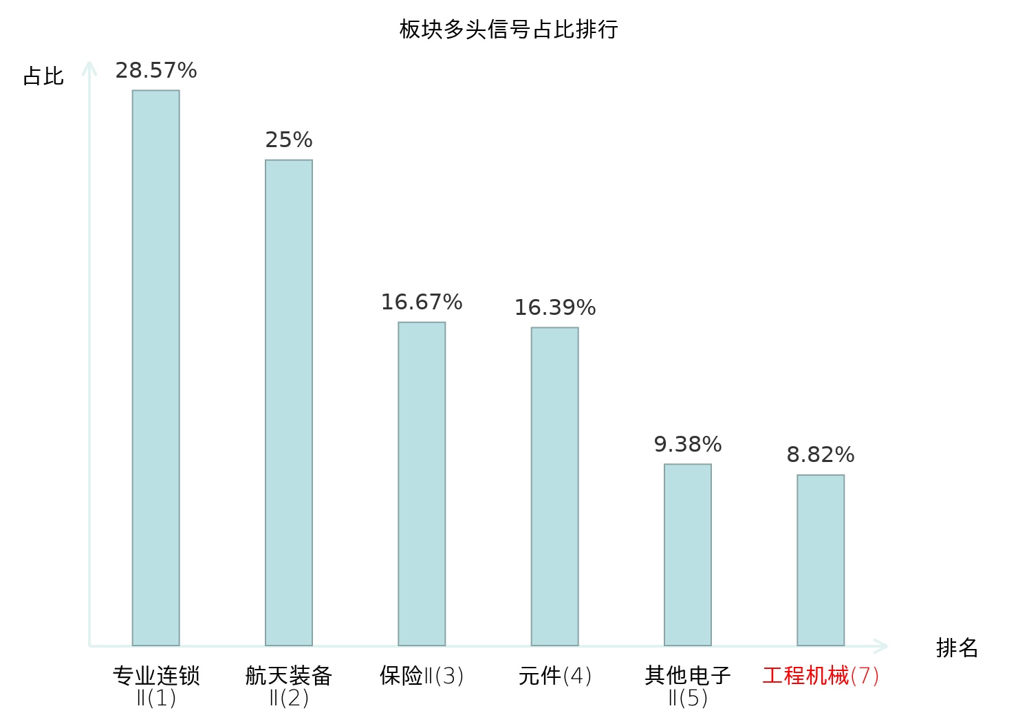 全市场所有行业板块中主力多头信号占比排名中,专业连锁Ⅱ板块位居第一。保险Ⅱ板块名次提升最快,较昨日上升121位。