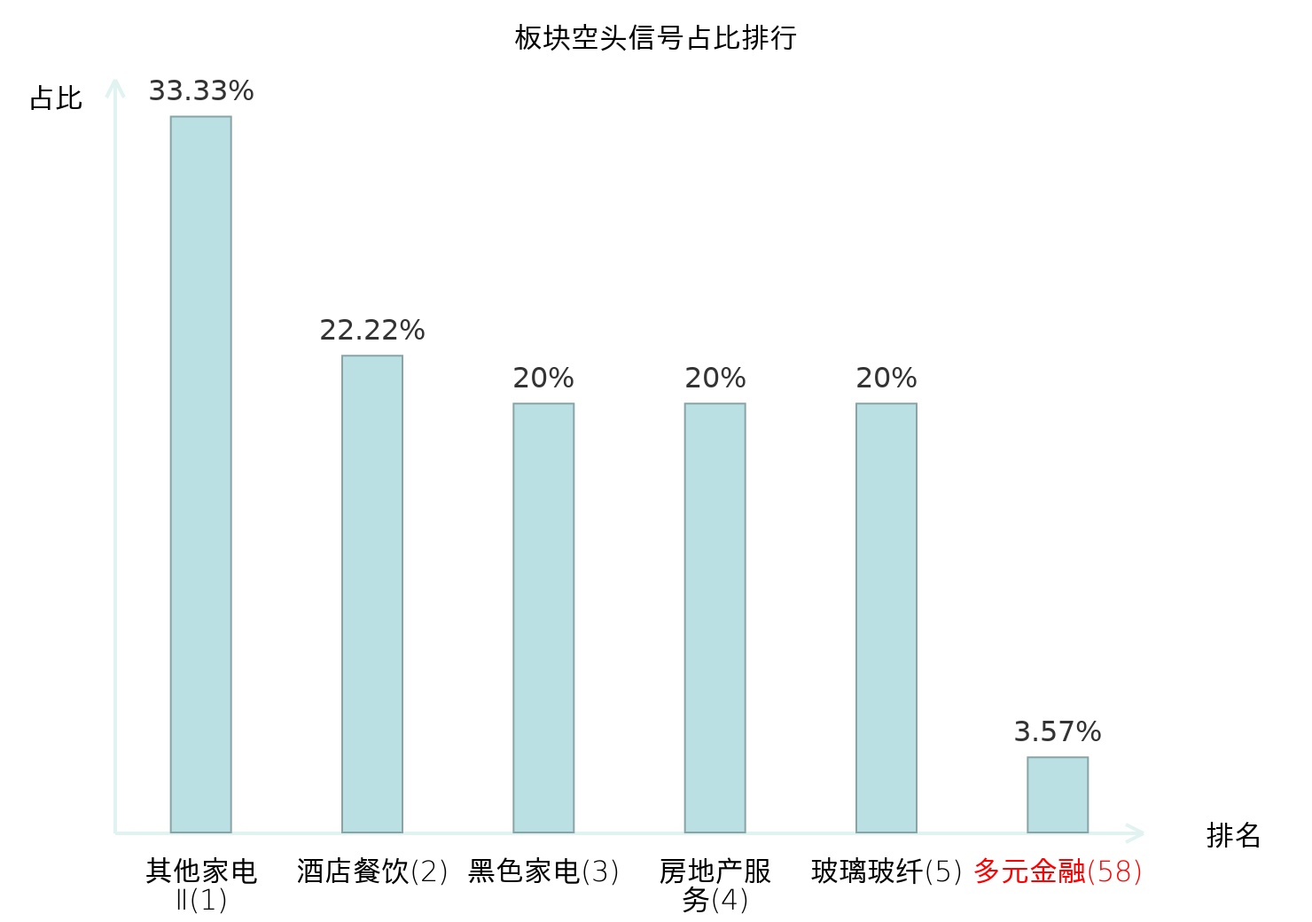 全市场所有行业板块中主力空头信号占比排名中,其他家电Ⅱ板块位居第一。家居用品板块名次提升最快,较昨日上升111位。