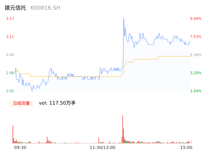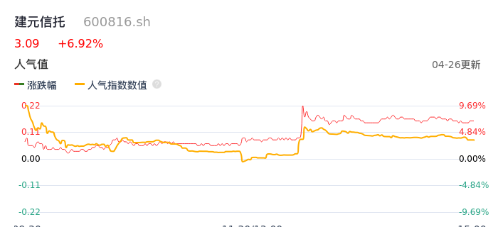 04月26日,建元信托收报3.09,股价涨幅6.92%,成交金额3.58亿元,换手率2.15%。