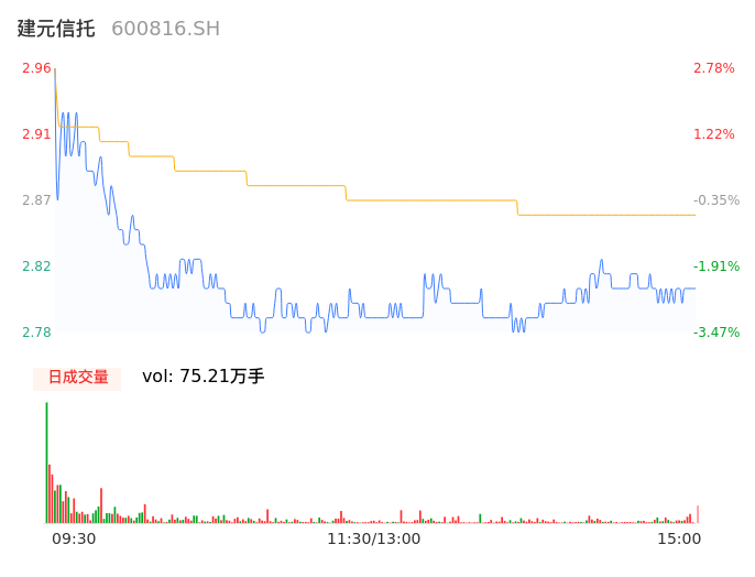 04月10日,建元信托收报2.82,股价涨幅-2.08%,成交金额2.15亿元,换手率1.41%。