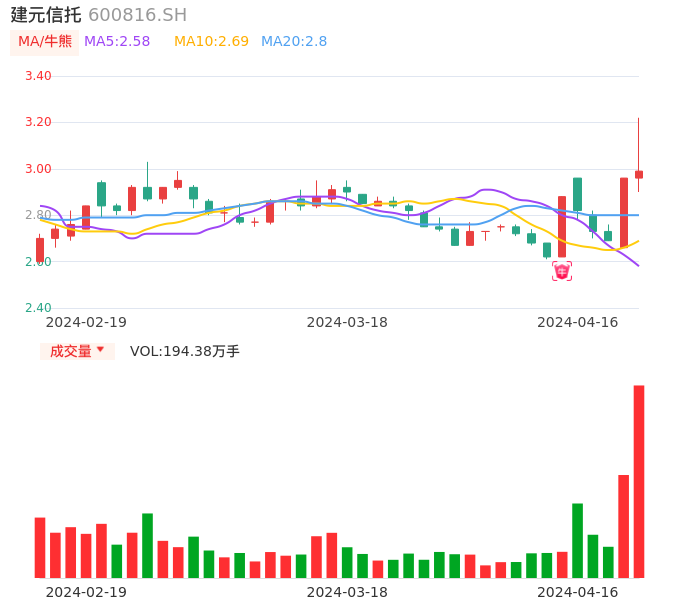 04月16日,建元信托收报2.99,股价涨幅1.01%,成交金额5.89亿元,换手率3.55%。
