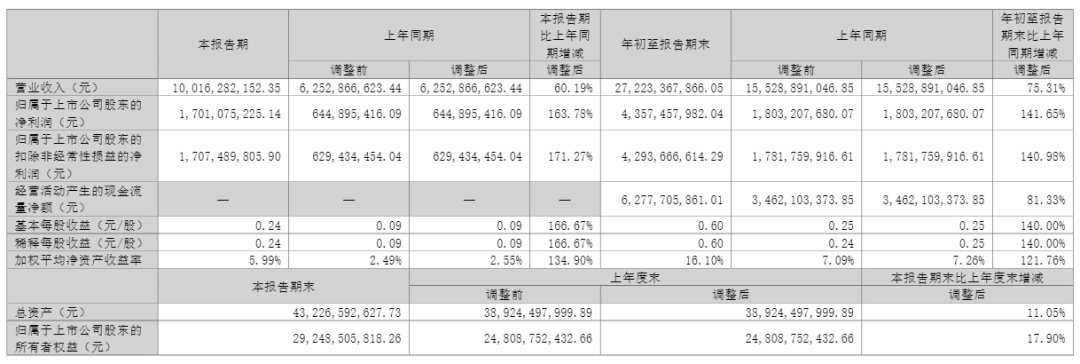 ST华通三季报显示,今年前三季度,公司实现营业收入272.23亿元,同比增长75.31%,实现归母净利润43.57亿元,同比增长141.65%。