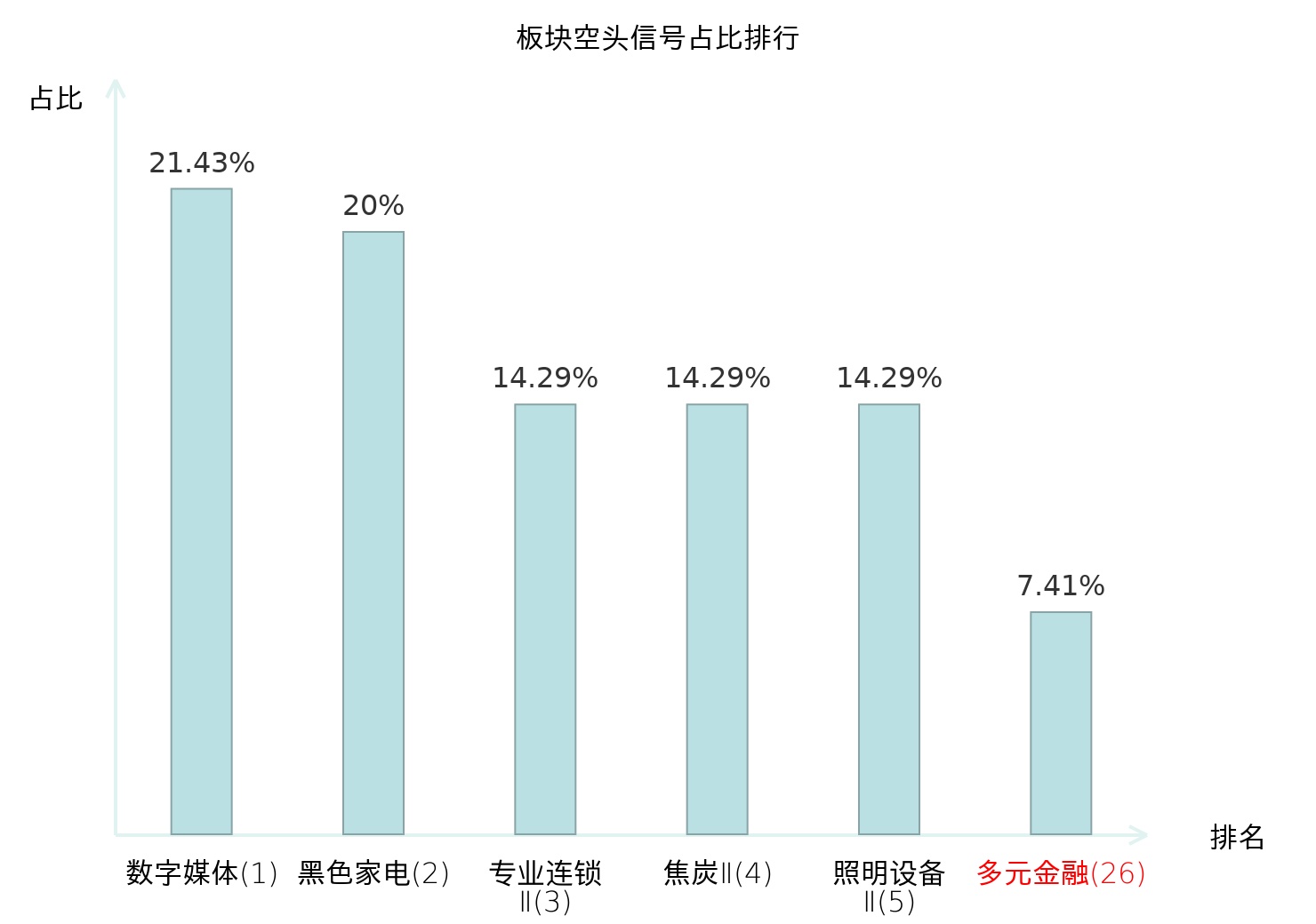 全市场所有行业板块中主力空头信号占比排名中,数字媒体板块位居第一。装修装饰Ⅱ板块名次提升最快,较昨日上升110位。