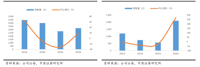 图表2:公司环卫装备销售量和同比增长(左)公司工程机械销售量和同比增长(右)