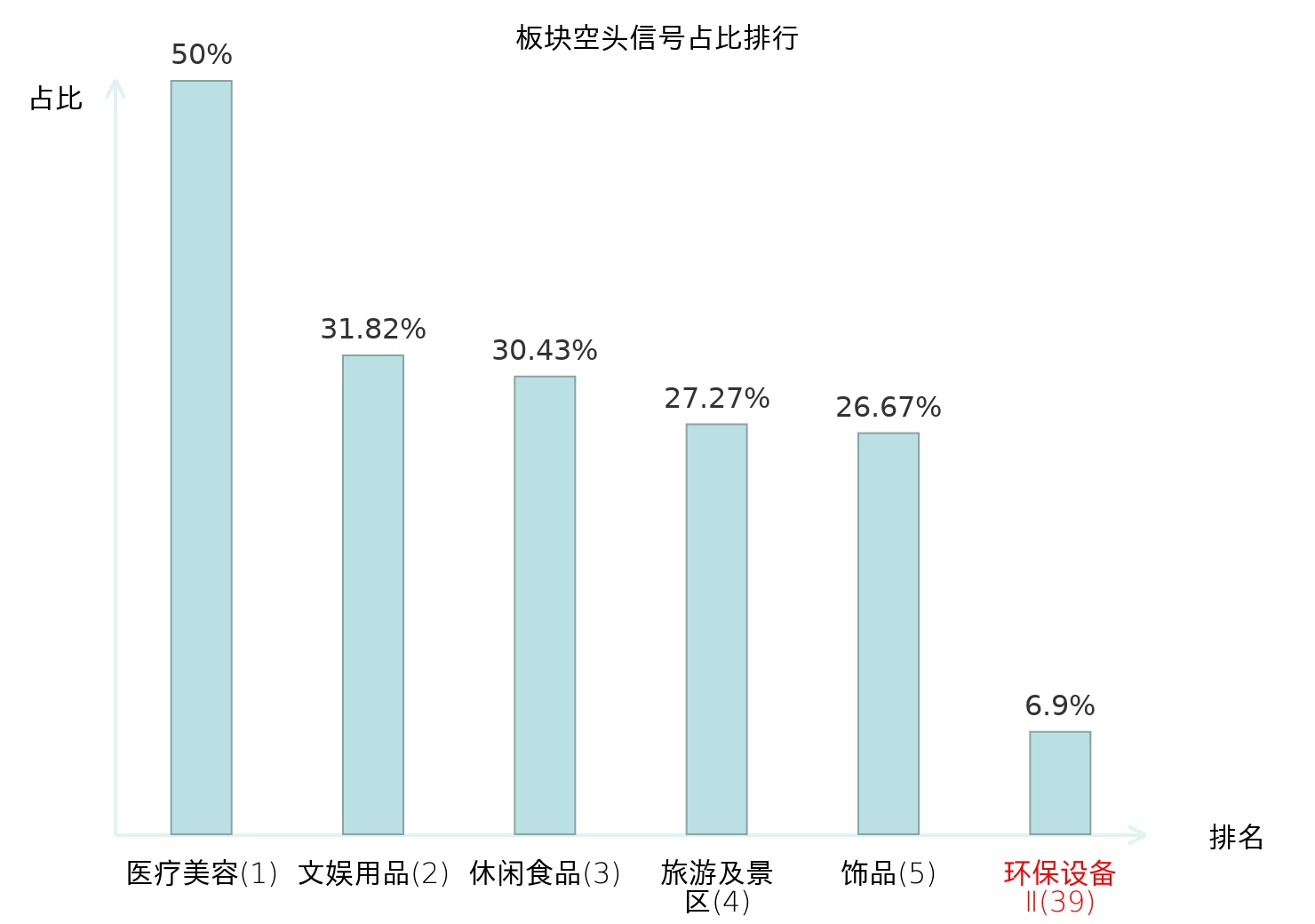 全市场所有行业板块中主力空头信号占比排名中,医疗美容板块位居第一。服装家纺板块名次提升最快,较昨日上升114位。