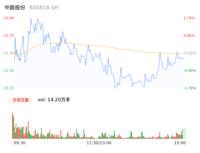 04月19日,中路股份收报23.46,股价涨幅-0.38%,成交金额3.34亿元,换手率5.97%。